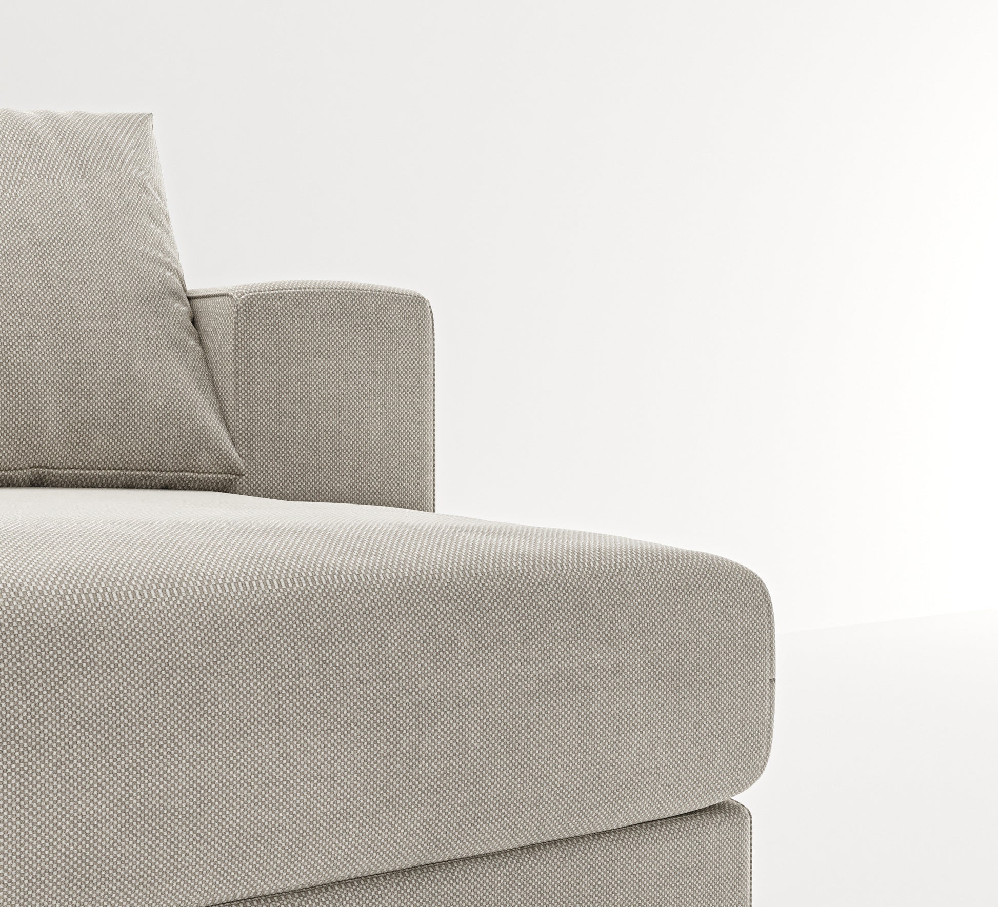 De Aska bank brengt zachtheid en comfort samen in een elegante, moderne vorm. De losse rugkussens en brede zitvlakken zorgen voor een ontspannen uitstraling, terwijl de afgeronde hoeken een vriendelijke sfeer creëren.