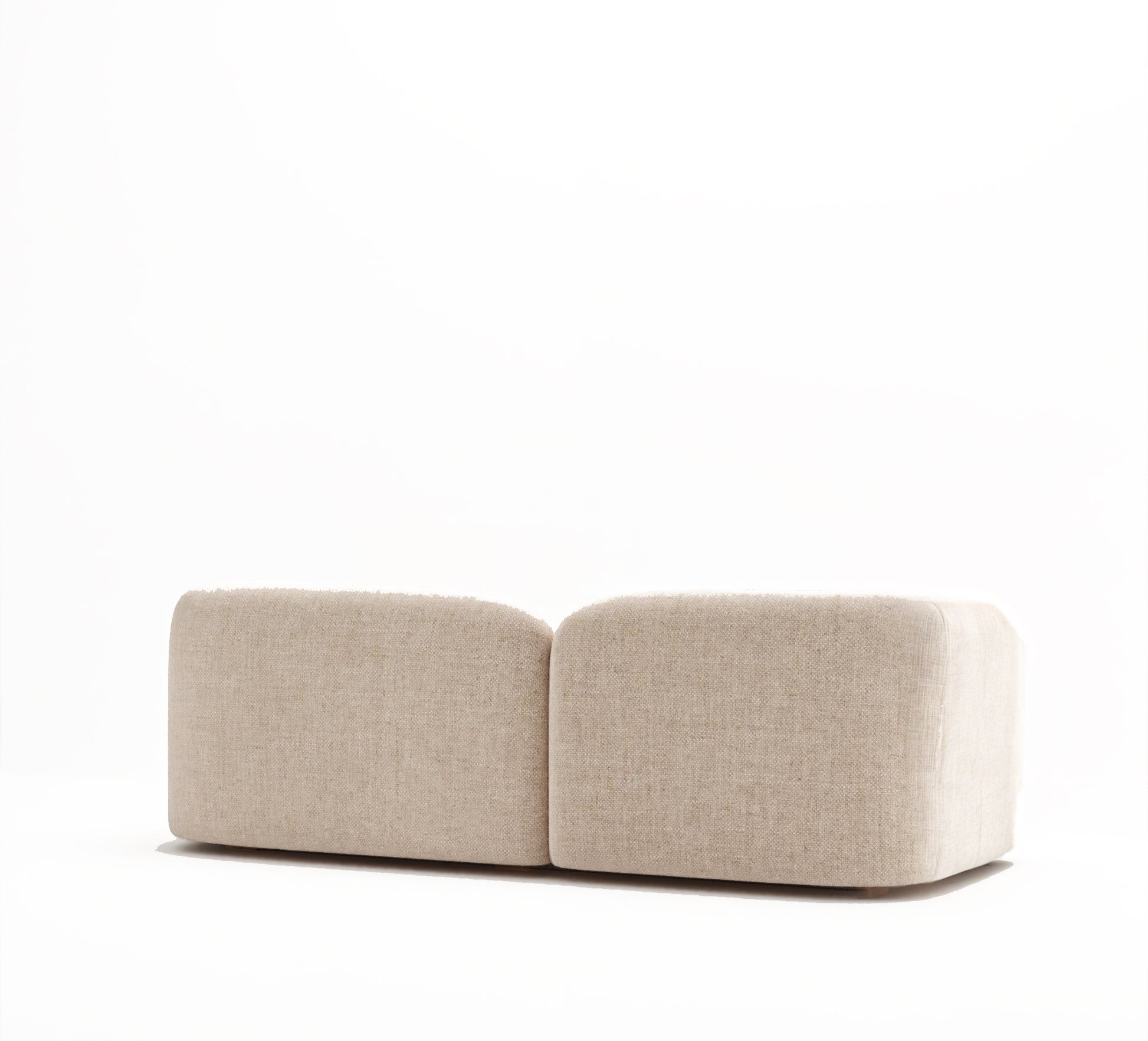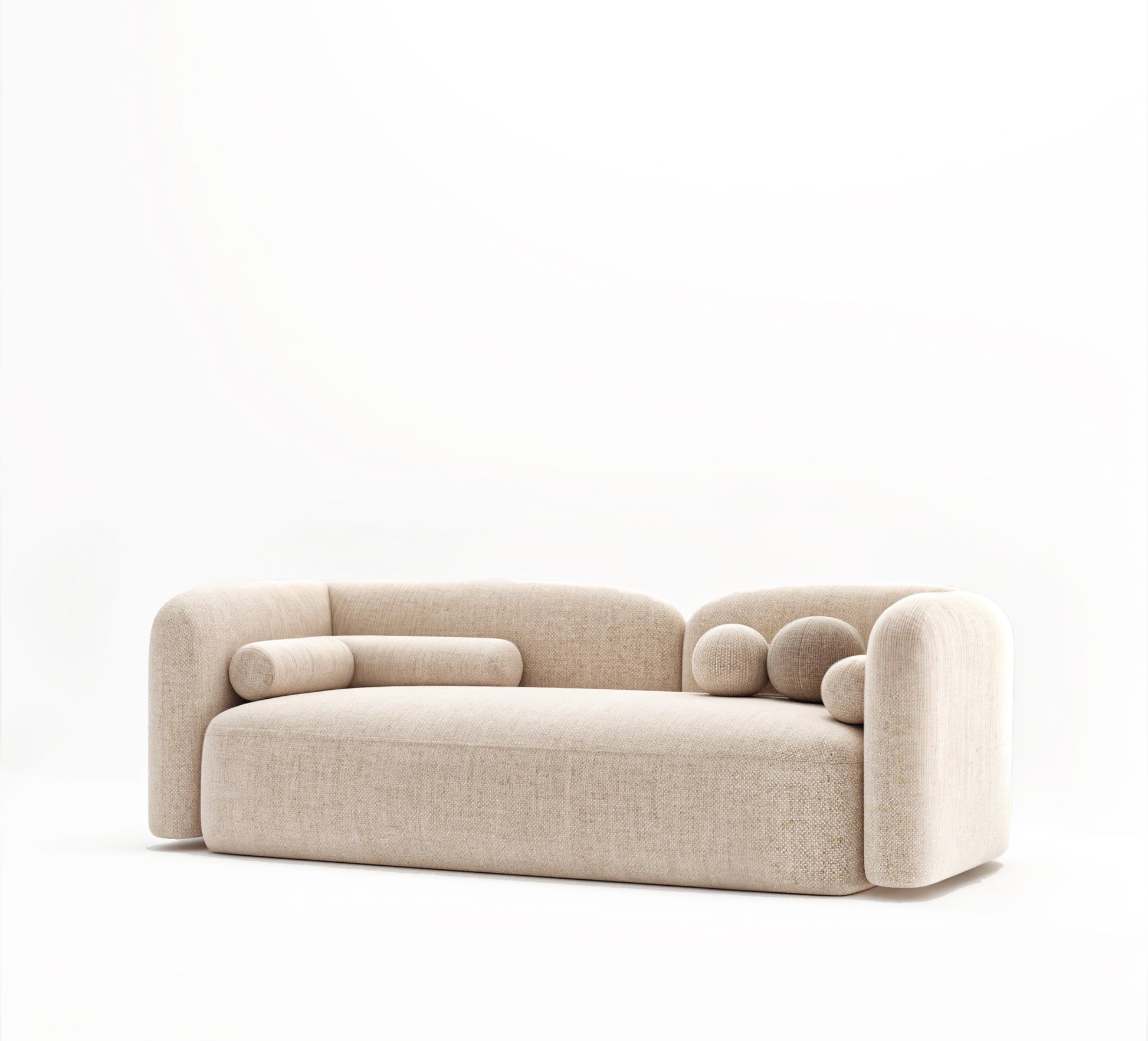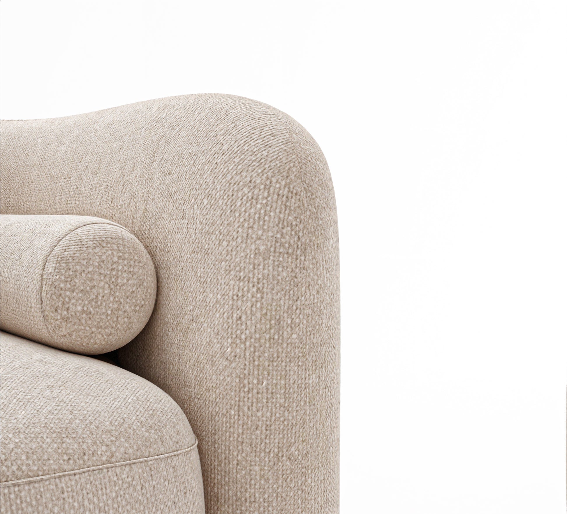 De Mysa bank is een zacht vormgegeven statement piece. Met afgeronde zittingen en cilinderkussens voegt hij een speelse en tegelijk rustige sfeer toe aan het interieur.