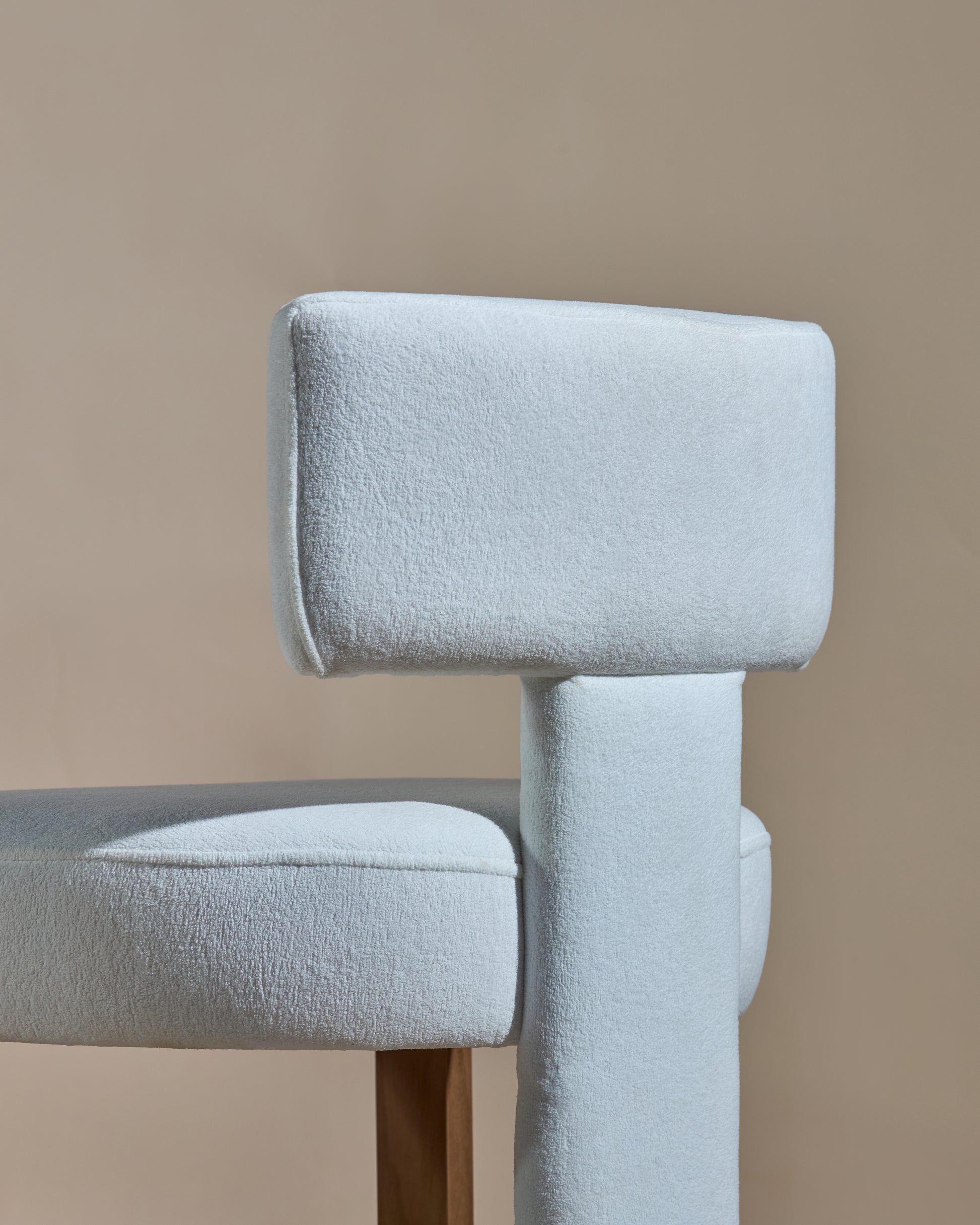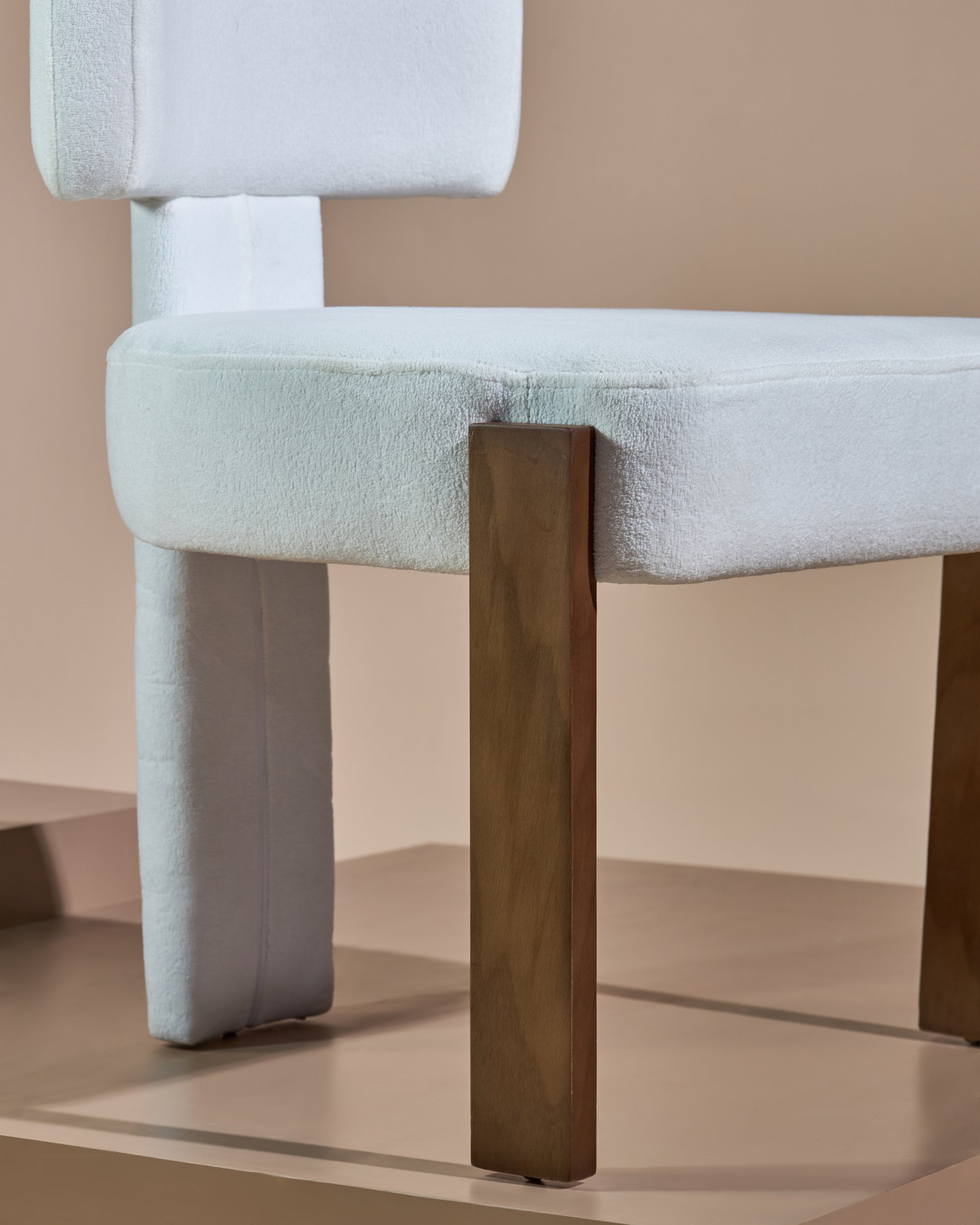 De Nefertiti eetkamerstoel straalt krachtige eenvoud uit. De rechte lijnen, compacte vorm en zachte bekleding vormen samen een modern geheel dat stabiliteit en comfort uitstraalt. Een perfecte keuze voor een strak, eigentijds interieur.