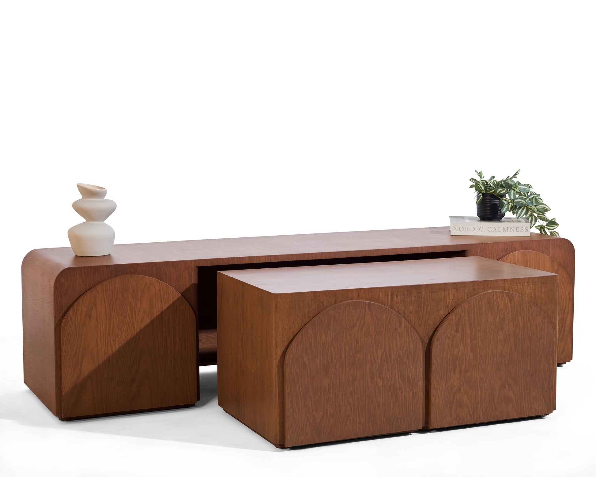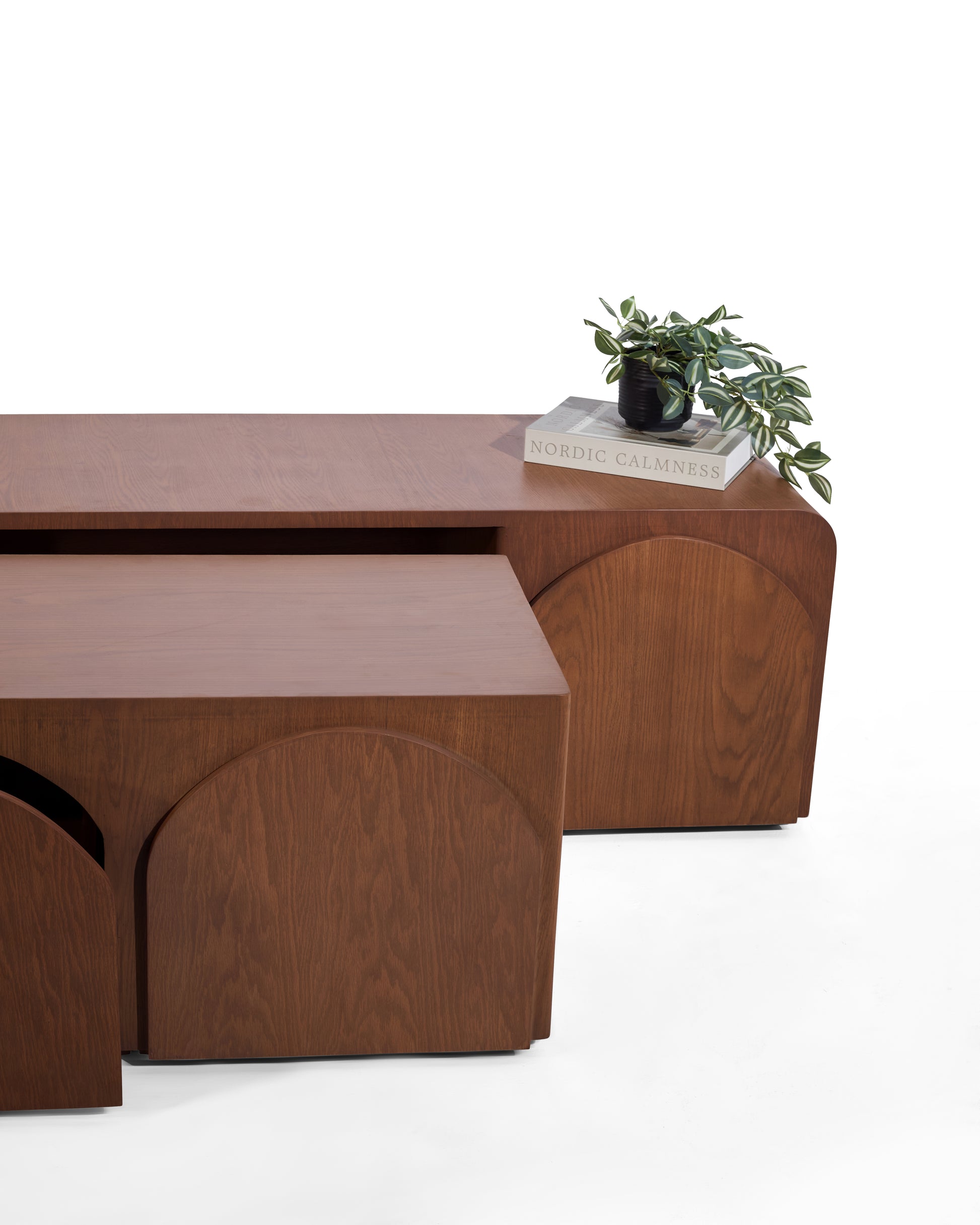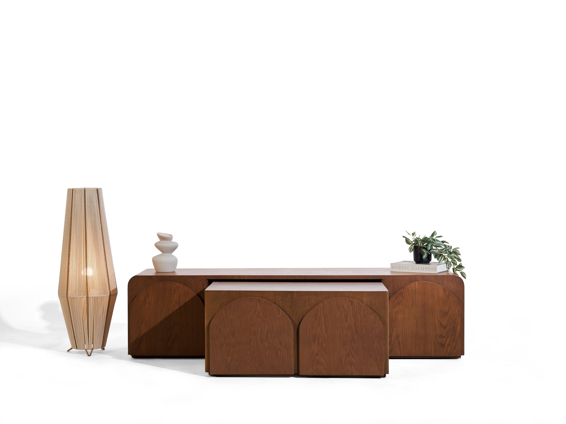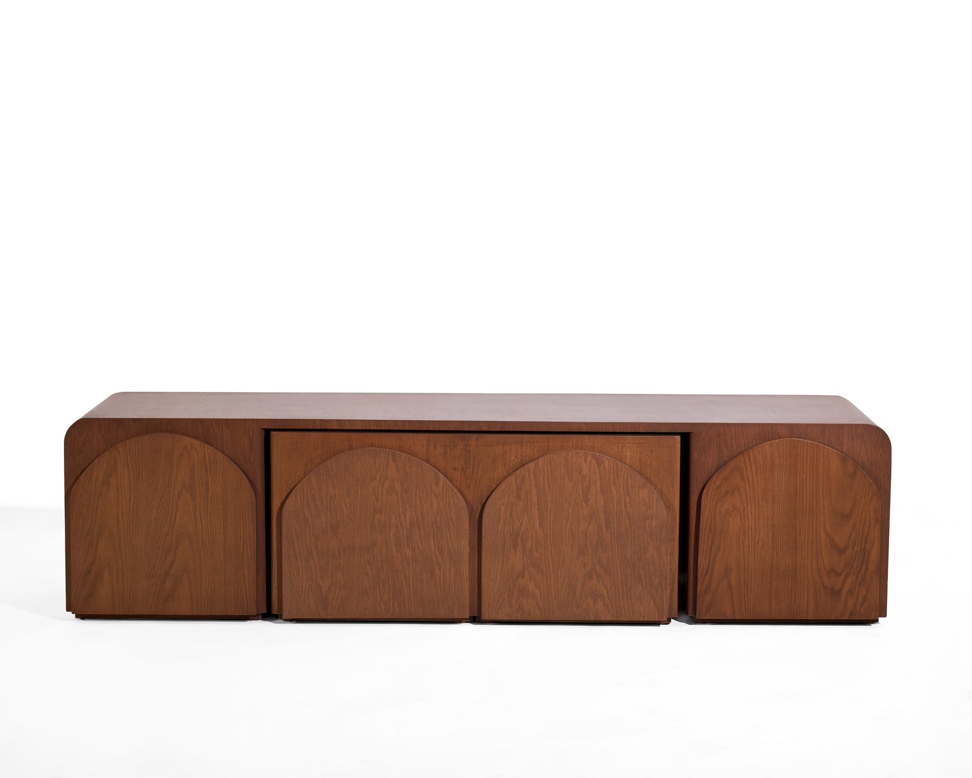 Een innovatief meubel dat design en functionaliteit moeiteloos samenbrengt. Deze tv-unit verbergt twee salontafels die je gemakkelijk uitschuift wanneer je extra tafelruimte nodig hebt, en weer inschuift om ruimte vrij te maken in huis. Het meubel straalt een warme Japandi-uitstraling uit, met een natuurlijke houtlook die in elke nerf een verhaal vertelt. Volledig handgemaakt, ontworpen voor een interieur waarin rust en karakter samenkomen.